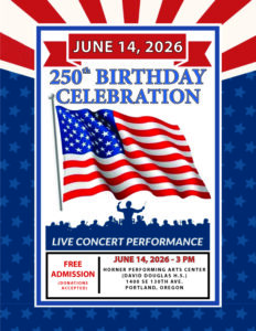 Sunday January 11, 2026 at 3PM, at the Howard F Horner Performing Arts Center, 1400 SE 130th Ave, Portland, Oregon. It’s on the northwest corner of David Douglas High School.